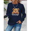 The İstanbul Kadın Uzun Kollu Bisiklet Yaka Ayıcık Desenli Viskon Iki Iplik Bluz Lacivert