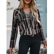 The İstanbul Kadın Uzun Kollu V Yakalı Desenli Dalgıç Bluz Siyah
