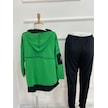 The İstanbul Kadın Yeşil Kapşonlu Etek Ucu Detay Arma Ters Dikiş Gorunumlu Ikili Takım Yeşil