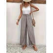 The İstanbul Kadın Yüksek Bel Lastikli Önden Iki Parçalı Desenli Bürümcük Pantolon Bej