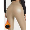 The İstanbul Kadın Yüksek Bel Toparlayacı Içi Şardonlu Tam Kalıp Deri Tayt Kahve
