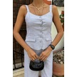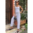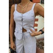 The İstanbul Kalın Askılı Bluz Pantolon Keten Takım 10187 Gri