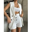 The İstanbul Keten Yelek - Şort Takım - Beyaz Beyaz