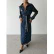 The İstanbul Kot Elbise Uzun Önden Düğmeli - Mavi Mavi