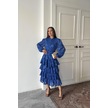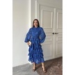 The İstanbul Saks Valonlu Şeritli Kat Kat Elbise Saks