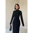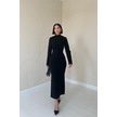 The İstanbul Siyah Omzu Güllü Düz Elbise Siyah