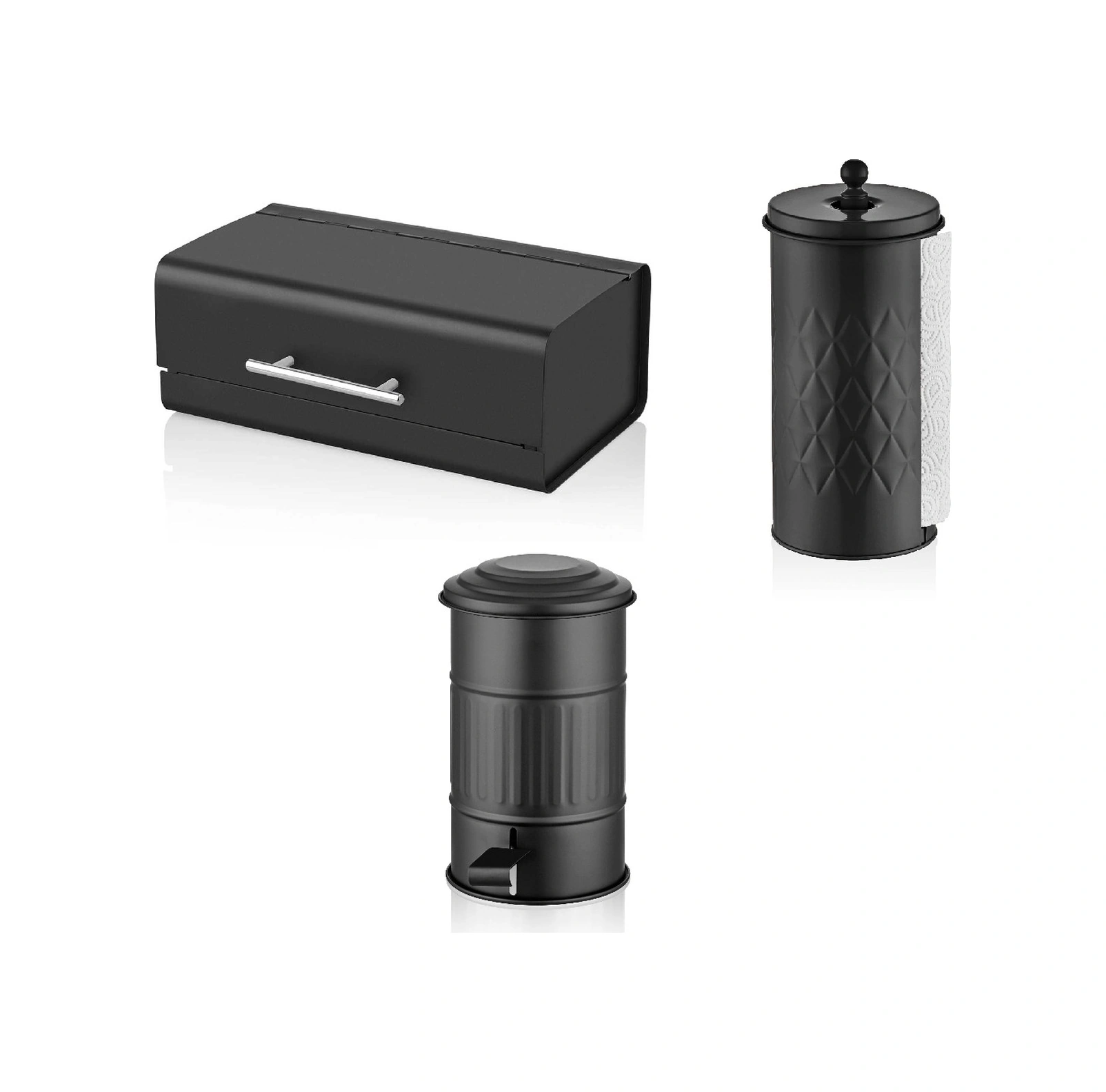 The Mia Ekmeklik - Çöp Kovası Havlu Peçetelik 3 Lü Mutfak Çeyiz Seti Siyah