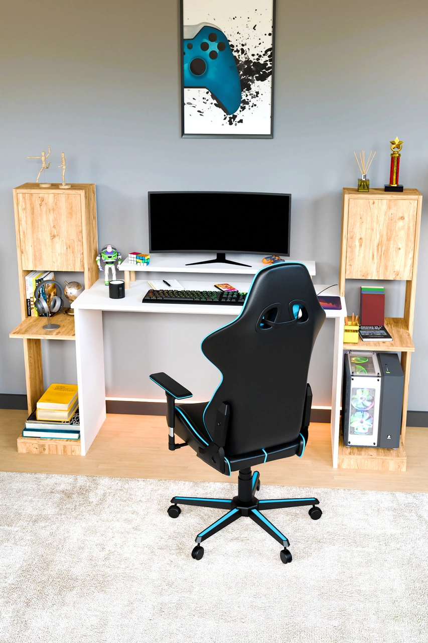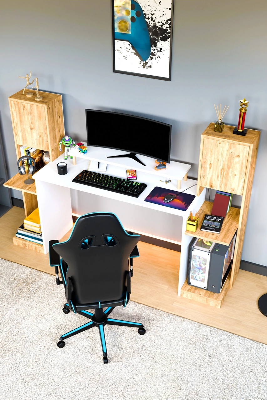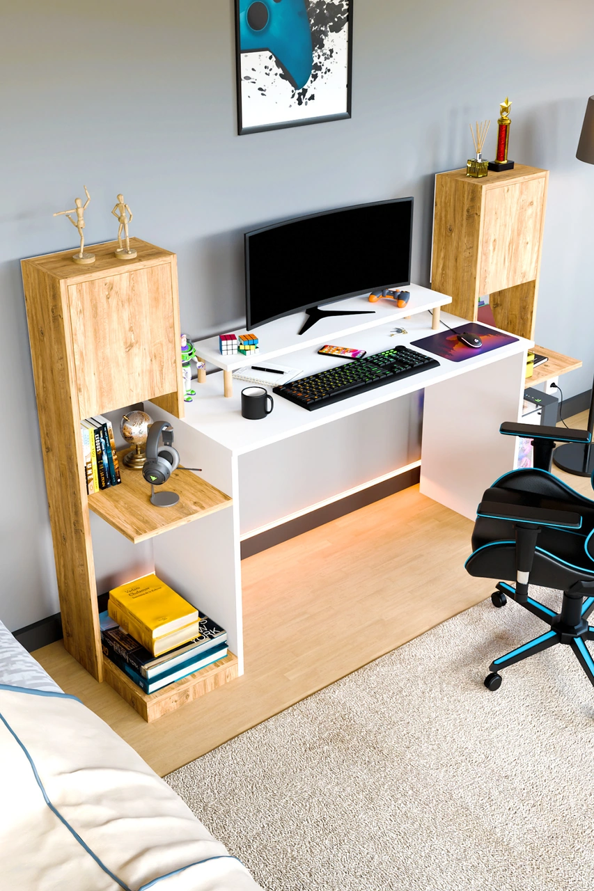 Throne Dolaplı, Kitaplıklı, Raflı Çalışma Masası, Bilgisayar Masası, Çocuk Çalışma Masası Atlantik Çam Atlantik Çam