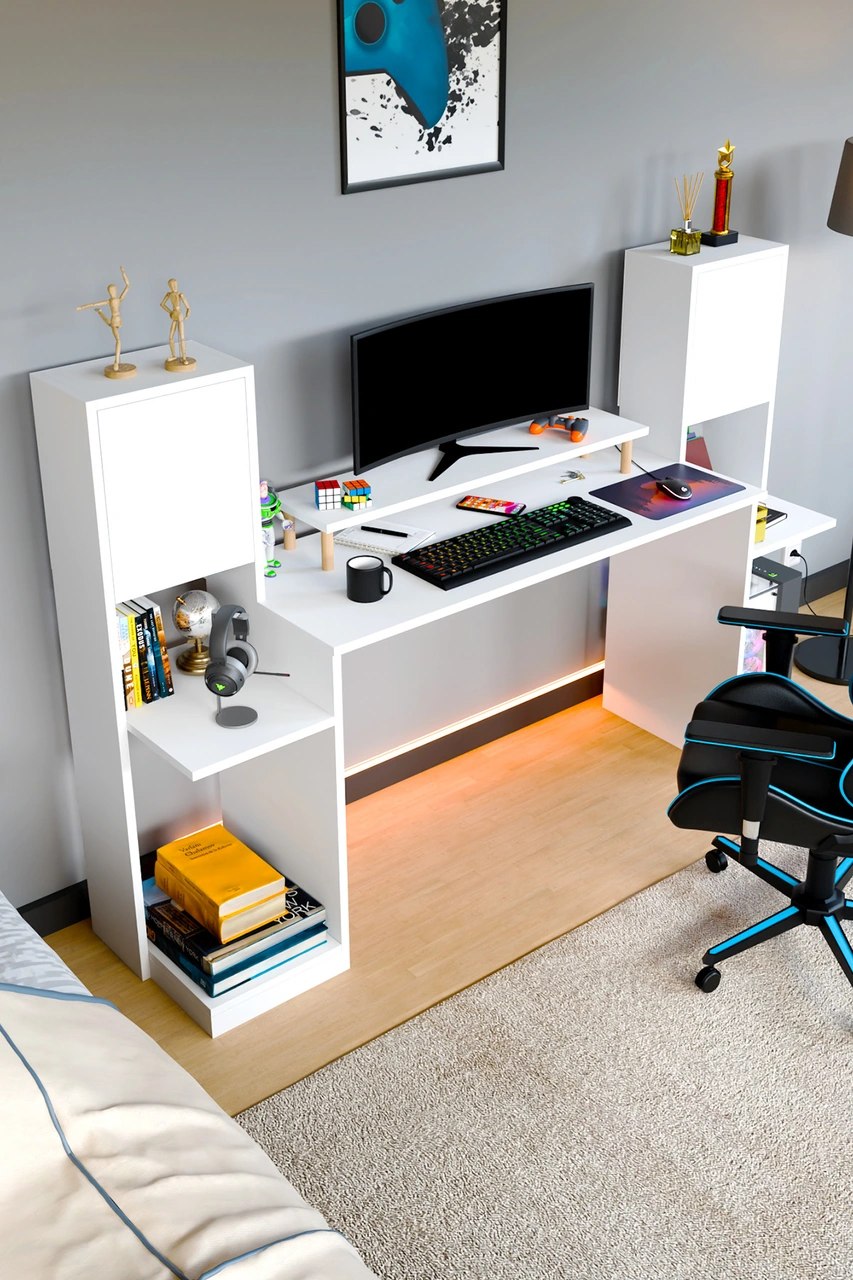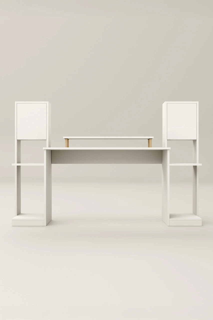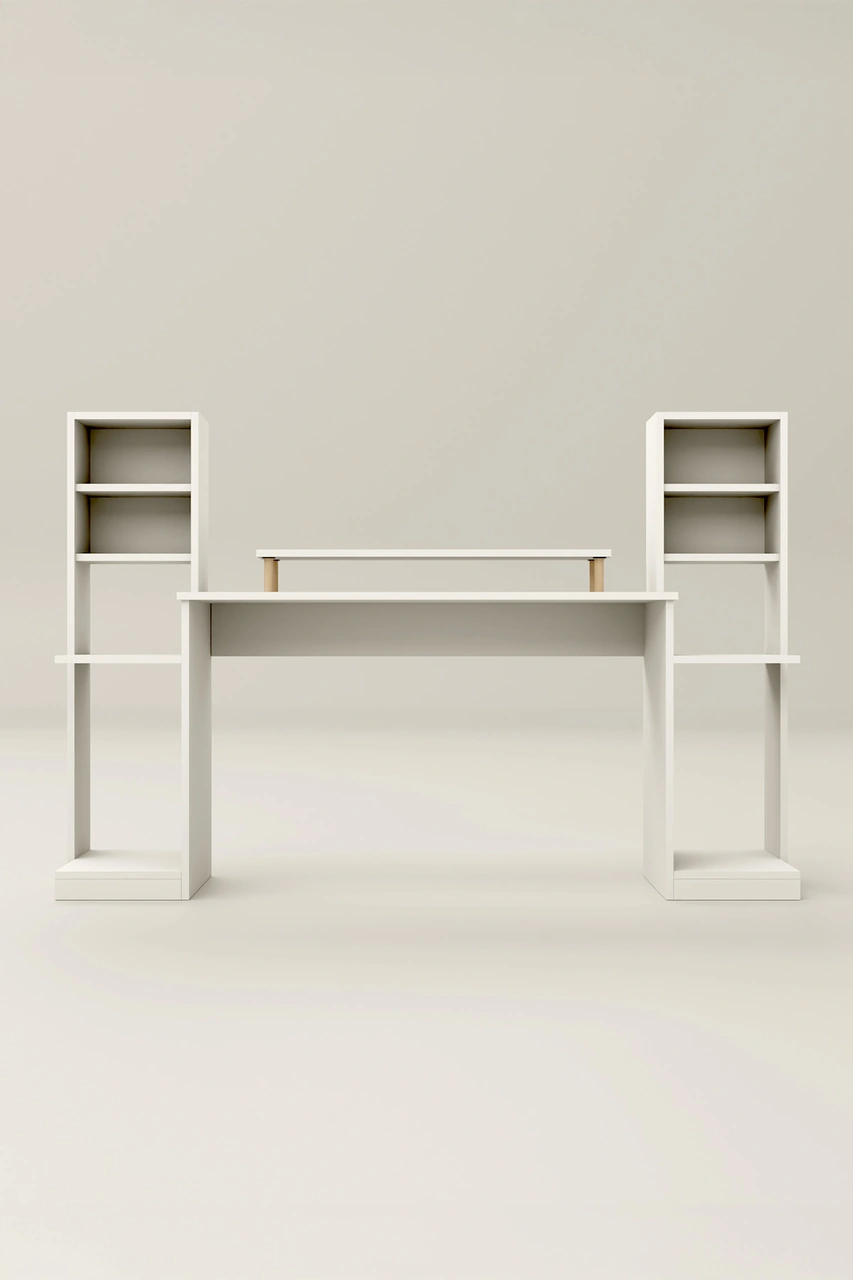 Throne Dolaplı, Kitaplıklı, Raflı Çalışma Masası, Bilgisayar Masası, Çocuk Çalışma Masası Beyaz Beyaz