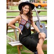 Tığ V Yaka Şık Oymalı Plaj Elbisesi Siyah