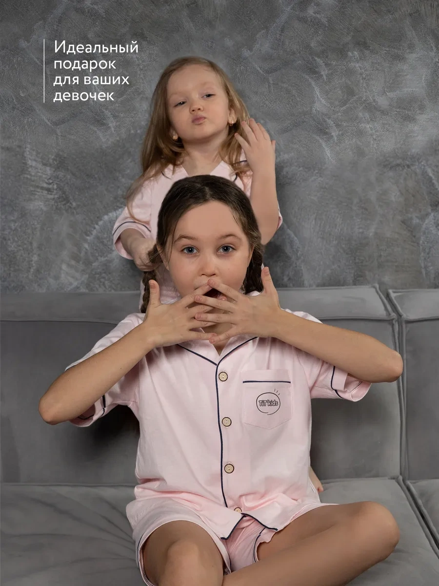 Tıt'kids Yazlık Pijama Takımı, Şortlu Ve Triko Pamuklu Gömlekli Yazlık Pijama Takımı, Şort Ve Gömlekten Oluşur. Triko P Pembe