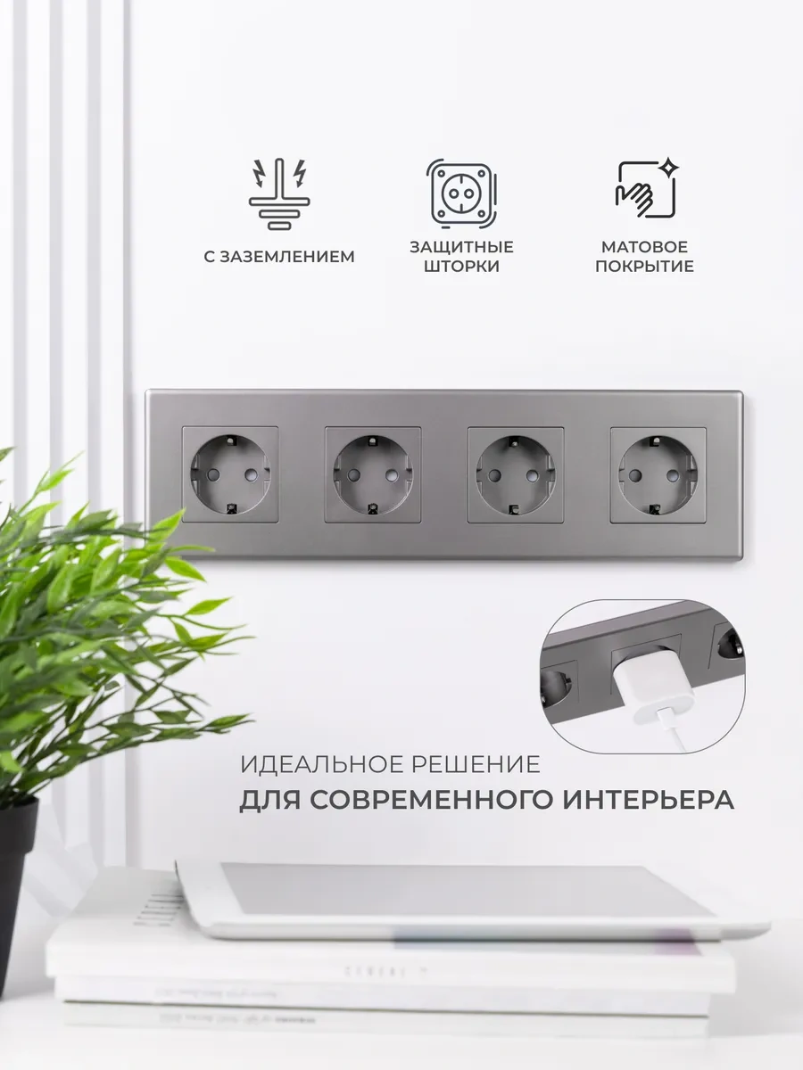 Tocterra Topraklamalı Dörtlü Gri Priz 242720885 Tavoie