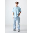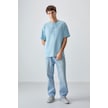 Tommy Life Açık Mavi %100 Pamuk Kalın Yumuşak Dokulu Oversize Fit Baskılı Erkek T-shirt - 88355 Açik Mavi