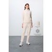 Tommy Life Bej Kalın Yumuşak Dokulu Dik Yaka Oversize Nakışlı Polar Kadın Eşofman Takım -95339 Bej