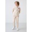 Tommy Life Bej Pamuklu Kalın İçi Tüylü Yumuşak Dokulu Standart Fit Baskılı Erkek Çocuk Eşofman Takım - 11246 Bej