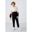 Tommy Life Bej-siyah Pamuklu Kalın İçi Tüylü Yumuşak Dokulu Standart Fit Nakışlı Erkek Çocuk Eşofman Takım - 1 Bej