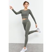 Tommy Life Çağla Uzun Kollu Dar Kalıp O Yaka Kadın Crop Top T-shirt - 97150 Çağla