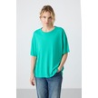 Tommy Life Deniz Yeşili Penye Modal Yumuşak Tuşeli Oversize Fit Basic Kadın T-shirt- 97285 Deniz Yeşili