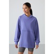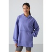 Tommy Life Eflatun Balon Kol Yazı Nakışlı Kadın Oversize Tunik Sweatshirt - 97163 Eflatun