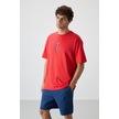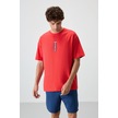 Tommy Life Fiesta %100 Pamuk Kalın Yumuşak Dokulu Oversize Fit Baskılı Erkek T-shirt - 88360 Kirmizi