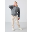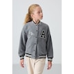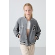 Tommy Life Gri Melanj Kalın Yumuşak Dokulu Standart Fit Nakışlı Polar Kız Çocuk Kolej Ceket - 75156 Gri Melanj