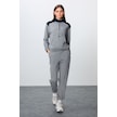 Tommy Life Gri Melanj Kompakt Pamuklu Kalın Pürüzsüz Dokulu Dik Yaka Oversize Fit Kadın Eşofman Takım - 95342 GRİ MELANJ