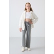 Tommy Life Gri Melanj Yırtmaç Detaylı Cepli Geniş Paça Kız Çocuk Eşofman Alt - 75141 Gri Melanj