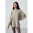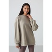 Tommy Life Koyu Bej Balon Kol Yazı Nakışlı Kadın Oversize Tunik Sweatshirt - 97163 Koyu Bej