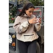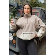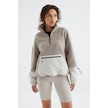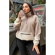 Tommy Life Koyu Bej Etek Ucu Büzgülü Yarım Fermuarlı Oversize Kadın Polar Sweatshirt - 97238 Koyu Bej
