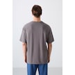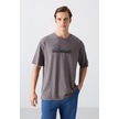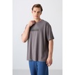 Tommy Life Koyu Gri Pamuklu Kalın Yumuşak Dokulu Oversize Fit Baskılı Erkek T-shirt - 88334 Koyu Gri