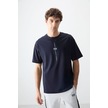 Tommy Life Lacivert Pamuklu Kalın Yumuşak Dokulu Oversize Fit Baskılı Erkek T-shirt - 88373 Lacivert