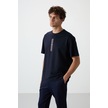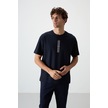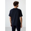 Tommy Life Lacivert Pamuklu Kalın Yüzeyi Dokulu Oversize Fit Baskılı Erkek T-shirt - 88366 Lacivert