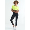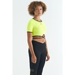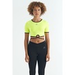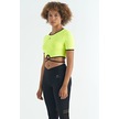 Tommy Life Neon Sarı Bel Bağlama Detaylı O Yaka Standart Kalıp Dalgıç Kumaş Kadın Crop T-shirt - 97266 Neon Sarı