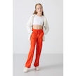 Tommy Life Portakal Cepli Ön Dikiş Detaylı Geniş Paça Kız Çocuk Eşofman Altı -75144 Turuncu