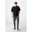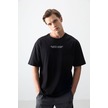 Tommy Life Siyah %100 Pamuk Kalın Yumuşak Dokulu Oversize Fit Baskılı Erkek T-shirt - 88356 Siyah