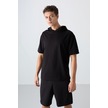 Tommy Life Siyah Pamuklu Kalın Yumuşak Dokulu Oversize Fit Basic Erkek T-shirt - 88352 Siyah