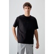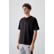 Tommy Life Siyah Pamuklu Kalın Yumuşak Dokulu Oversize Fit Baskılı Erkek T-shirt - 88373 Siyah