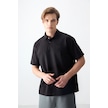 Tommy Life Siyah Pamuklu Kalın Yumuşak Dokulu Polo Yaka Oversize Fit Basic Erkek T- Shirt - 88382 Siyah