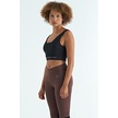 Tommy Life Siyah Yazı Baskılı Renk Bloklu Dar Kalıp Dalgıç Kumaş Kadın Büstiyer - 97271 Siyah