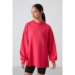 Tommy Life Viva Kırmızı Balon Kol Yazı Nakışlı Kadın Oversize Tunik Sweatshirt - 97163 Kırmızı