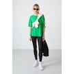 Tommy Life Yeşil Penye Modal Yumuşak Tuşeli Oversize Fit Basic Kadın T-shirt- 97285 Yeşil