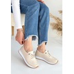 Tone Bej Cilt Bağcıklı Spor Ayakkabı Renkli Çok Renkli