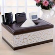 Tongdashop Beyaz Altın Kumanda Ve Akıllı Telefon Organizörlü Şık Siyah Suni Deri Mendil Kutusu Beyaz Altın