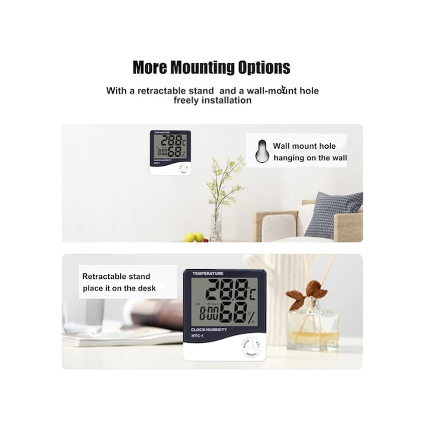Tongxida Anasayfa Termometre Higrometre - İç Mekan Sıcaklık Ve Nem Ölçer, Alarmlı Saat, Büyük Lcd Ekran, Max/min Hafızalı Htc-
