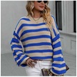 Tongxida Kadın Büyük Beden Kayısı Koyu Krem Çizgili Örgü Yuvarlak Yaka Sonbahar Kış Kazak Koyu Krem