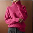 Tongxida Kadın Büyük Beden Yüksek Yaka Mizaçlı Seyahat Örme Moda Kazak Gül Kırmızı Fuşya Fuşya
