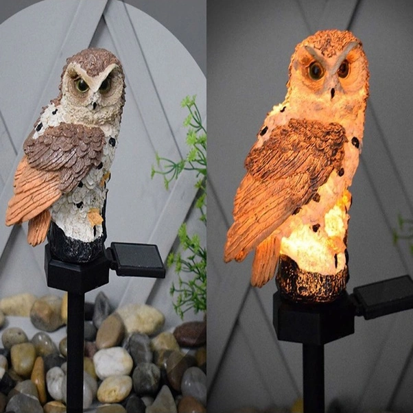 Tongxida Kahverengi Resin Solar猫头鹰 Bahçe Işığı, Otomatik Açık-kapalı, 8-10 Saat Süre, Su Geçirmez, 50000 Saat Ömür, Yeşil Işık