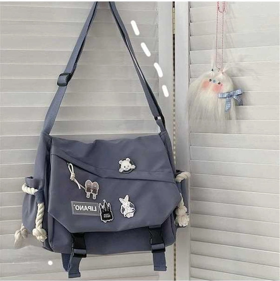 Tongxida Mavi Naylon Omuz Çantası - Genç Messenger Çanta - Büyük Kapasiteli Öğrenci Okul Çantası Mavi