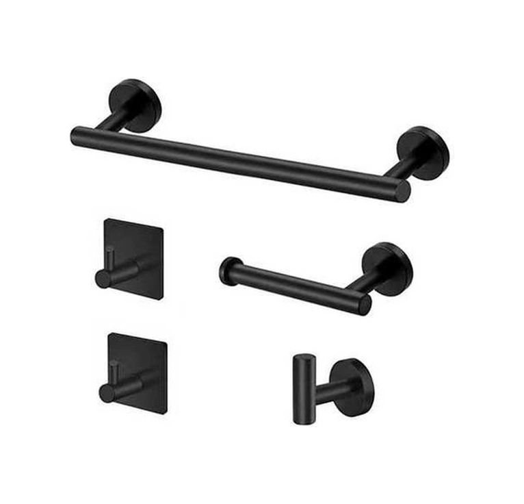 Tongxida Parça Banyo Donanım Aks. Seti Havlu Çubuğu Bornoz Kancaları Tuvalet Kağıdı Tut Paslanmaz Çelik Duvara Banyo-bornoz As Siyah