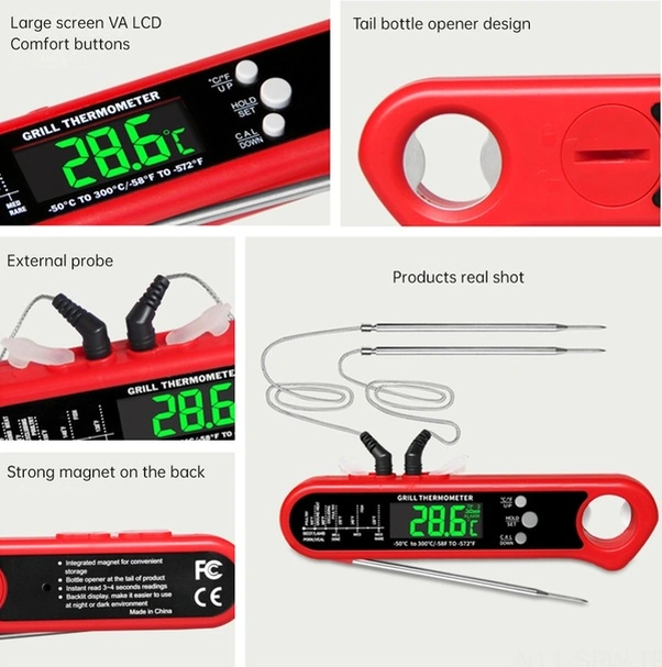 Tongxida Yüksek Hassasiyetli Lcd Ekranlı Kırmızı Et Ve Fırın Termometresi